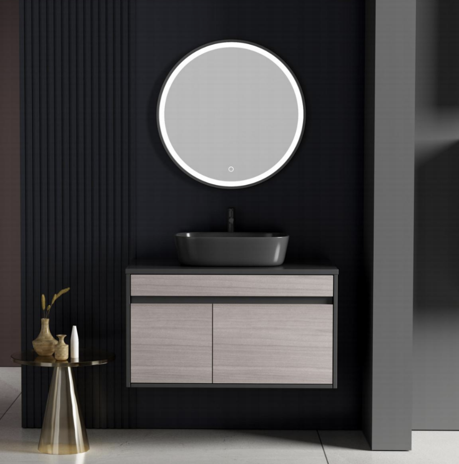 Un diseño moderno y sofisticado en PVC resistente a la humedad, ideal para baños que necesitan mayor espacio de almacenamiento sin perder estilo.
