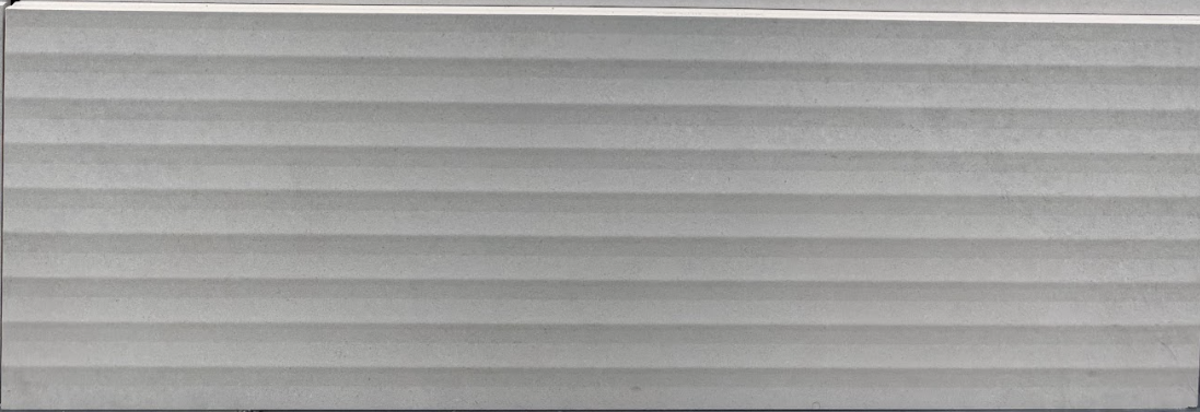 La losa RLV Sílice Perla aporta textura y movimiento con su diseño en relieve, ideal para dar un acabado decorativo elegante a las paredes.