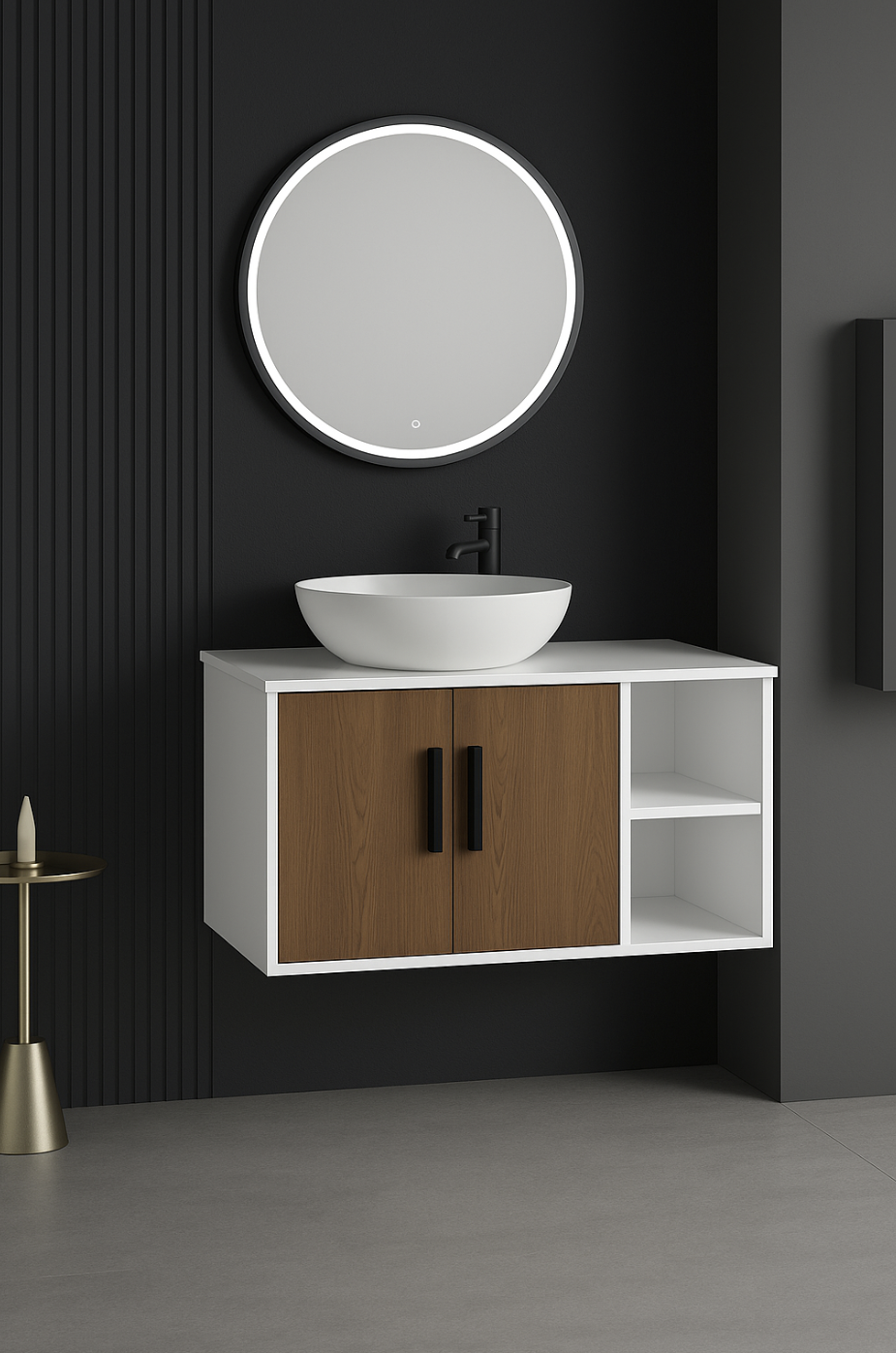 Diseño contemporáneo en PVC resistente a la humedad, pensado para baños modernos que buscan estilo y durabilidad. Disponible en acabados Teak y Wood Gray.